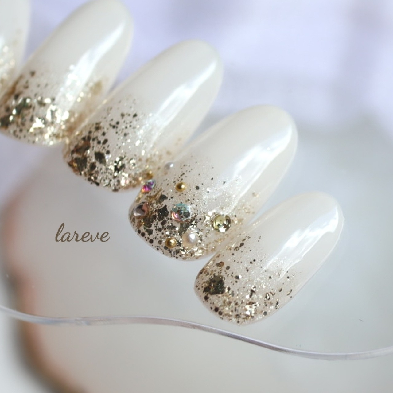 ホワイトミルクネイル/シャンパンゴールドネイル/クリスマスネイル ネイルチップ